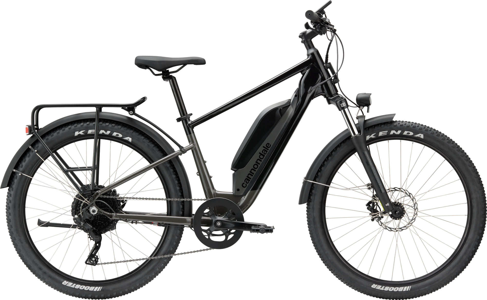USB charger, headlight, taillight w/ brake light function, kickstand, rear rack (25kg), composite fenders w/ stainless steel struts